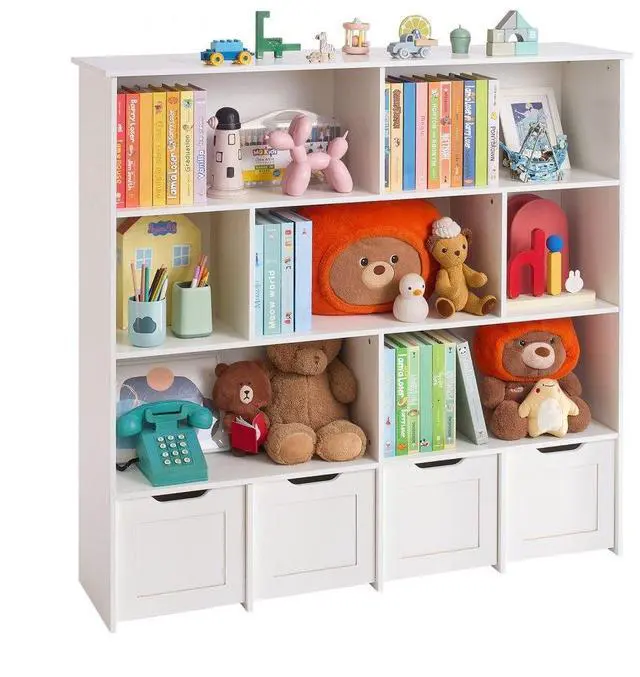 Toy Storage Organizer 3-Tier Wooden Cabinet 11 Section Cubbies with Drawers
