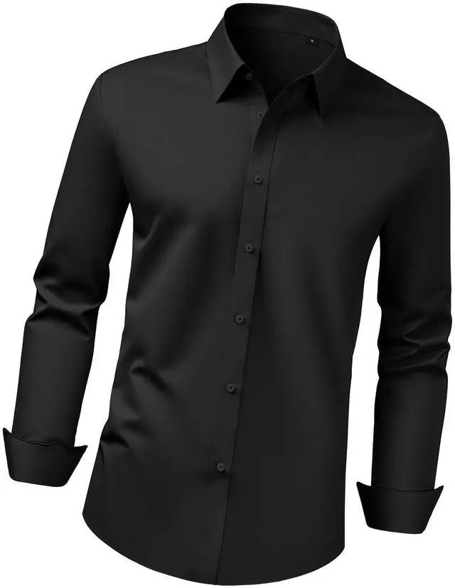 VEVOR Men's Button Up Shirt Long Sleeve Wrinkle-free Business Casual Black