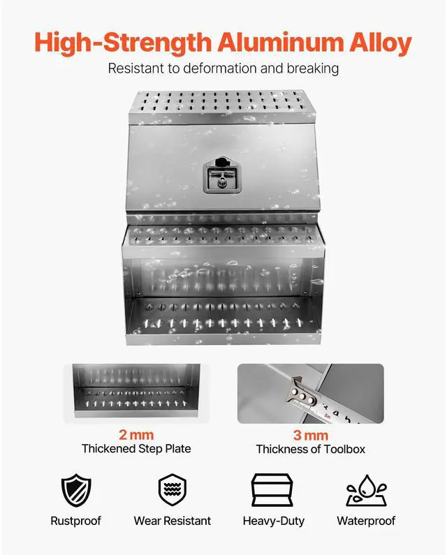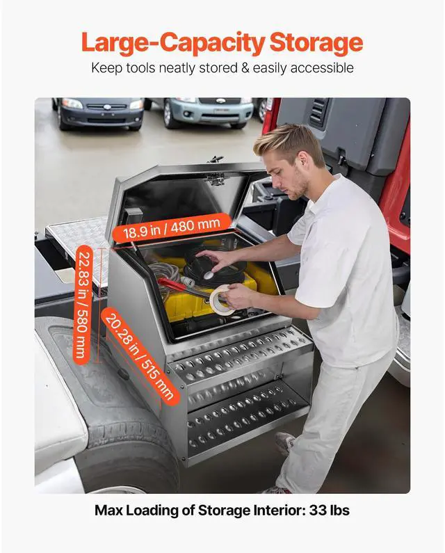 VEVOR Semi-Truck Step Tool Box 24" x 27.5" x 25.4" Heavy Duty Aluminum Toolbox