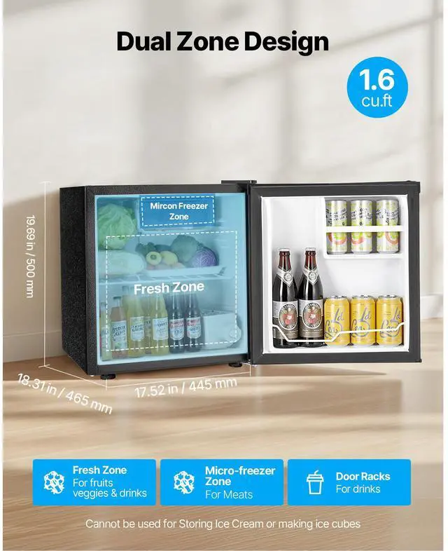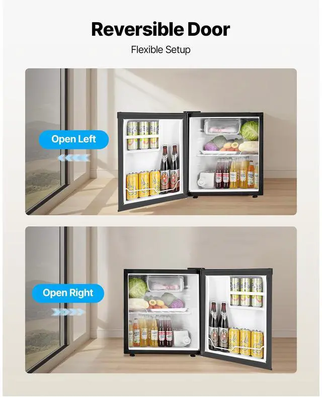 VEVOR Mini Fridge 1.6 Cu.Ft Single Door Compact Small Refrigerator Dorm Black