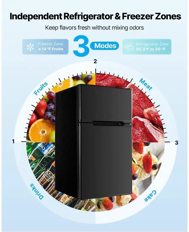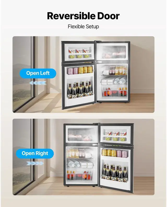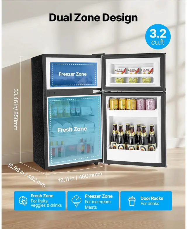 VEVOR Mini Fridge with Freezer 3.2 Cu.Ft Two Door Compact Refrigerator Black