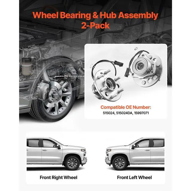 VEVOR Front Wheel Bearing & Hub Assembly Pair for 1999-2000 Cadillac Escalade