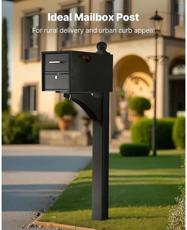 VEVOR Mailbox Post In-Ground Aluminum Mailbox Post Kit with Plate 56x4x4in Black