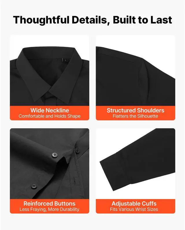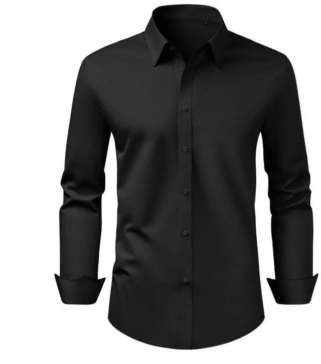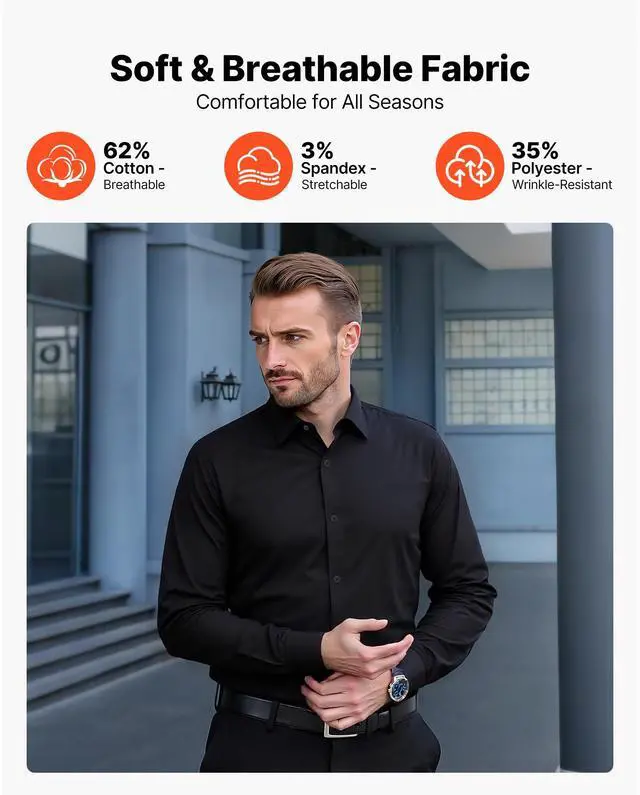 VEVOR Men's Button Up Shirt Long Sleeve Wrinkle-free Business Casual Black