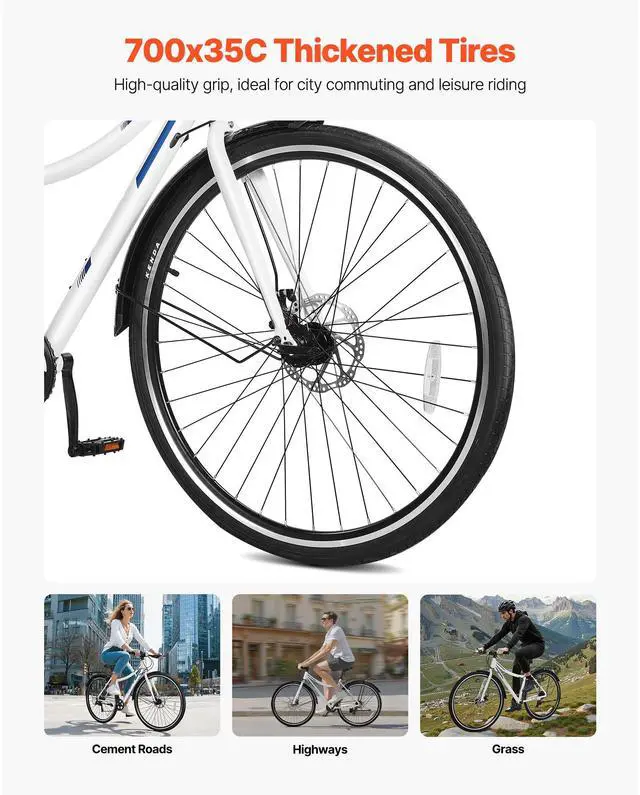 VEVOR Hybrid Bike Mens Hybrid Bicycle City Commuter Bikes 700c 7-Speed Shimano