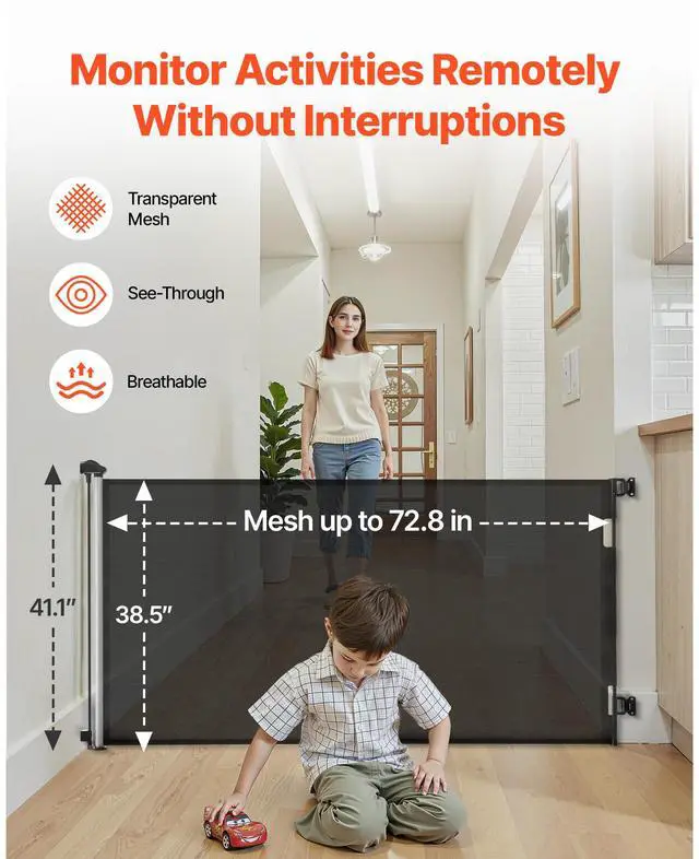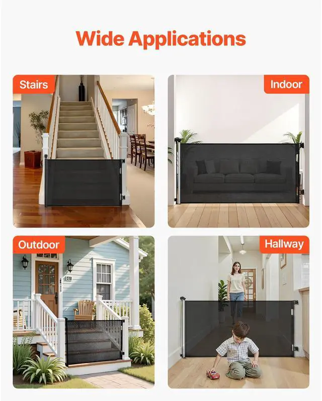 VEVOR Retractable Baby Gate Mesh Dog Gate 72.8 inch Wide 38.5 inch Tall Black