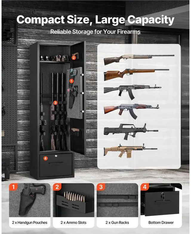 VEVOR 4 Gun Safe Long Gun Cabinet for Rifles & Pistols with Key and Password