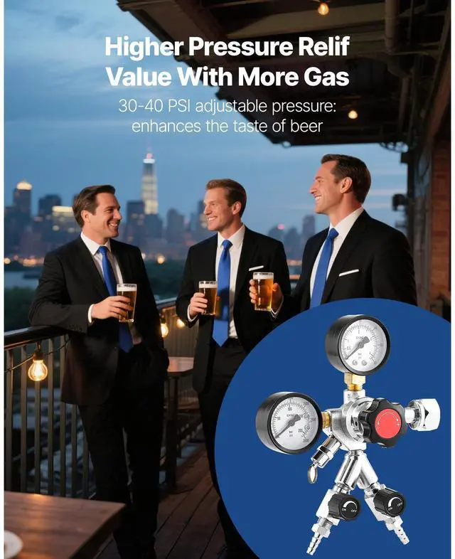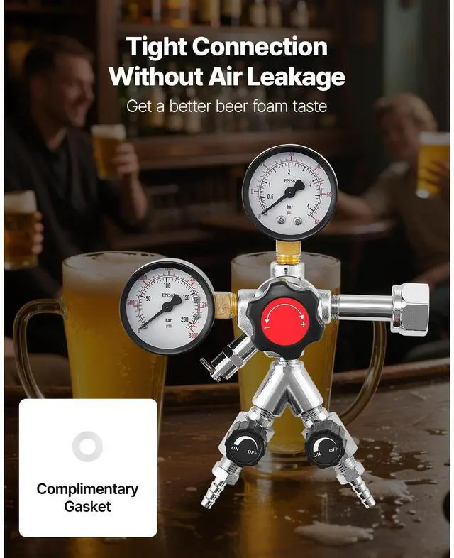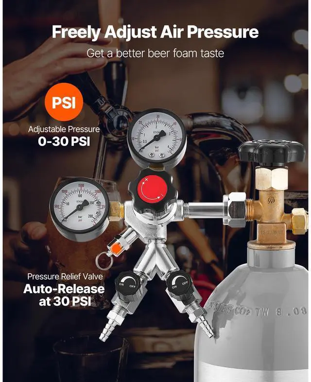 VEVOR Dual Gauge Gas Tank CO2 Regulator for Draft Beer Homebrew Kegerator CGA320