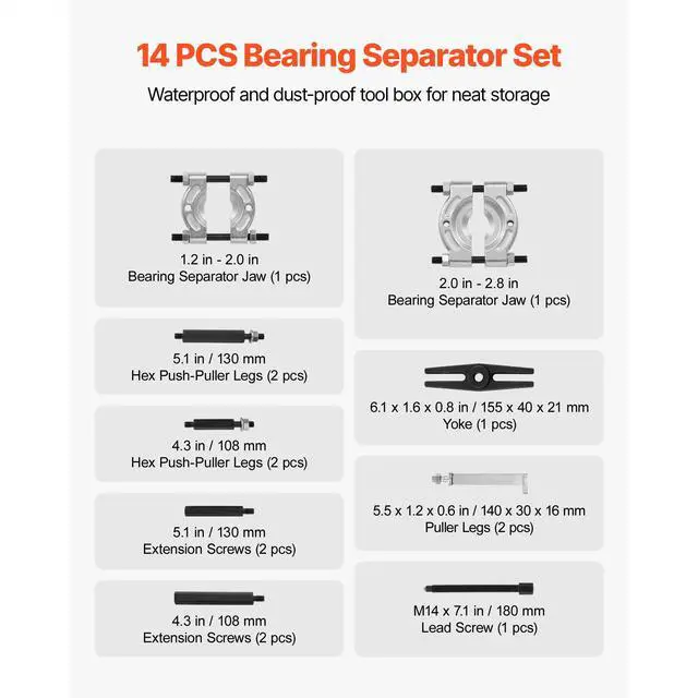 14 PCS Bearing Puller Set Bearing Separator Splitter Tool with Case 5 Ton