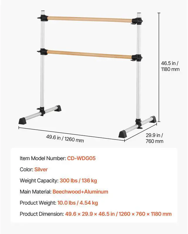 Weight Capacity: 300 lbs / 136 kg,Product Dimension: 49.6 x 29.9 x 46.5 inch / 1260 x 760 x 1180 mm,Color: Silver,Item Model Number: CD-WDG05,Product Weight: 10.0 lbs / 4.54 kg,Main Material: Beechwood+Aluminum
