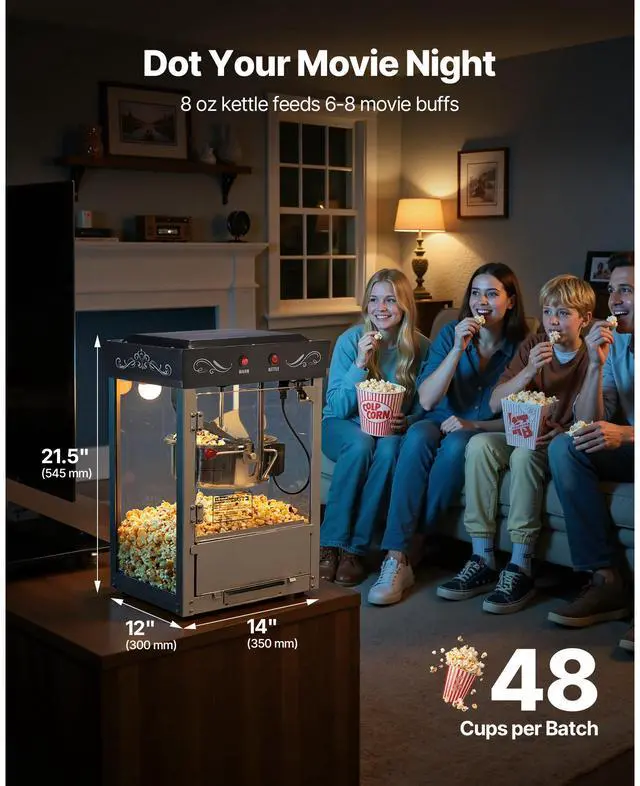 Popcorn Machine Countertop Popcorn Popper Maker 800W 8oz Kettle 48 Cups Black