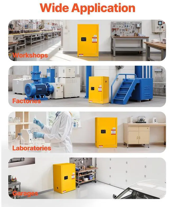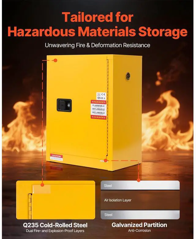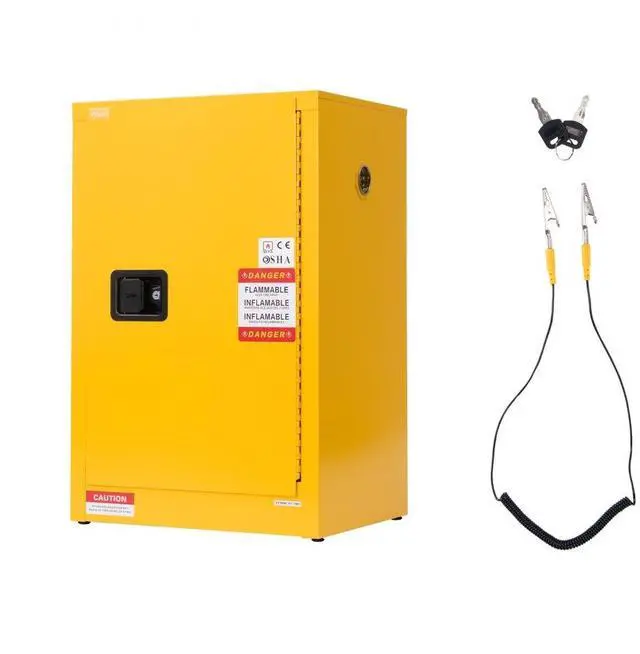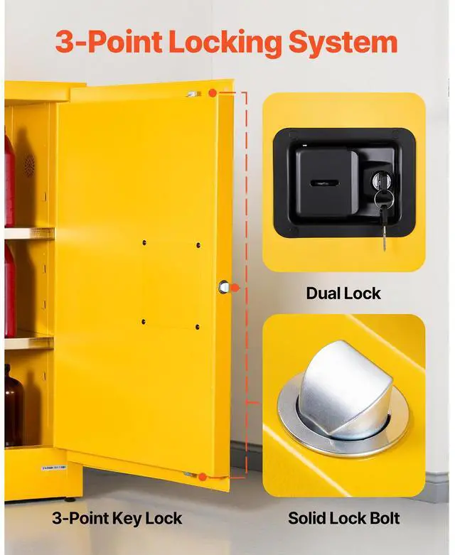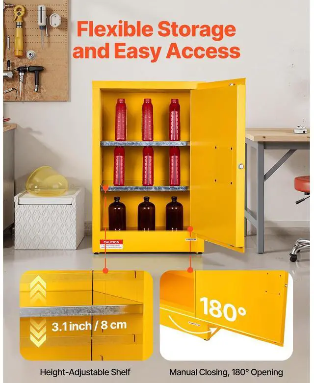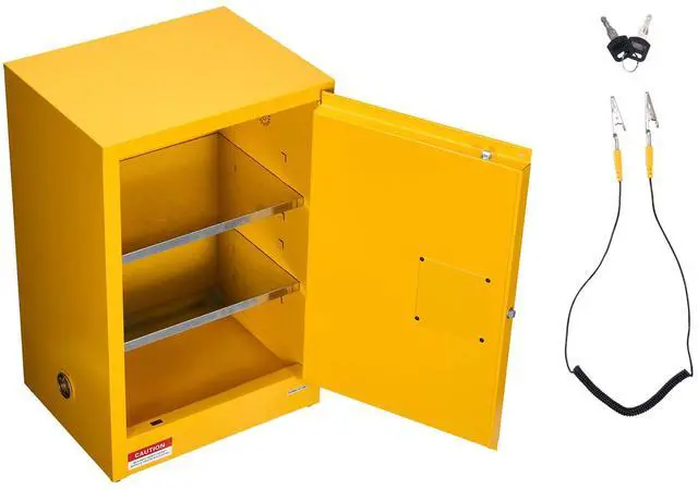 VEVOR Flammable Cabinet, 23.2 x 18.1 x 35.4 Inch, 13 Gallon Flammable Storage Cabinet with Adjustable Shelf, Cold-Rolled and Galvanized Steel Fire Cabinets, for Commercial Industrial Home Use, Yellow