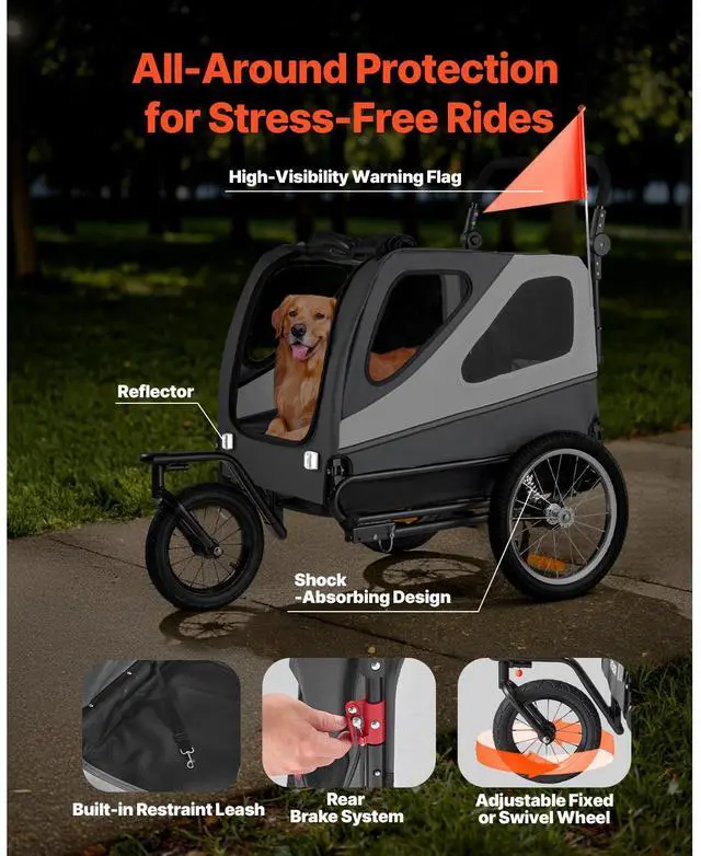 VEVOR Dog Bike Trailer Pet Bicycle Trailer & Stroller 100 lbs Water Resistant