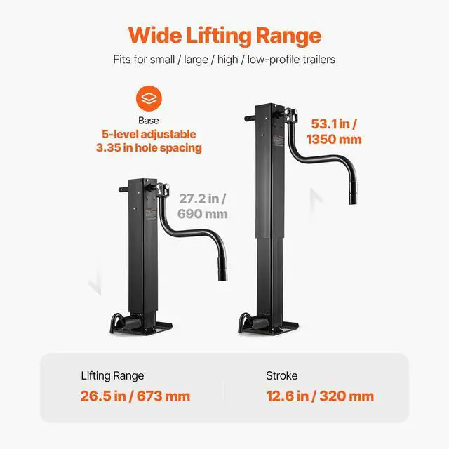 VEVOR Trailer Jack Weld-on Pipe Mount Swivel Trailer Jack 12000 lbs 12.6" Travel