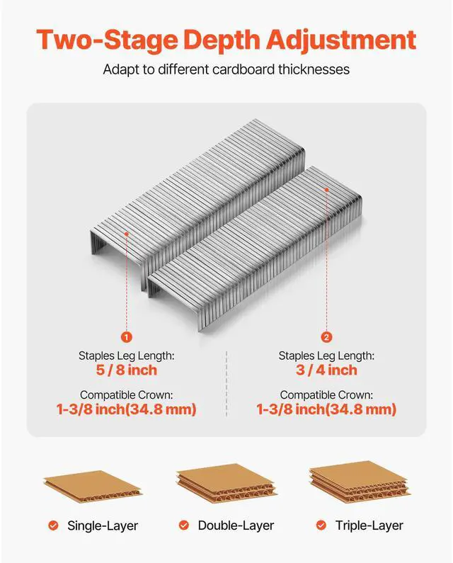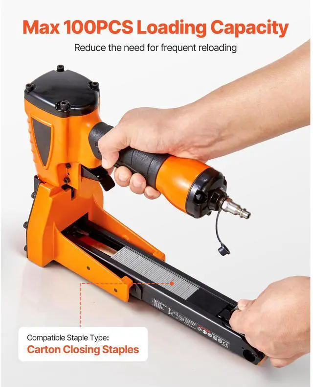 VEVOR Pneumatic Carton Closing Stapler 13 Gauge Air Staple Gun for 1-3/8" Crown