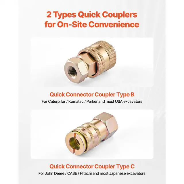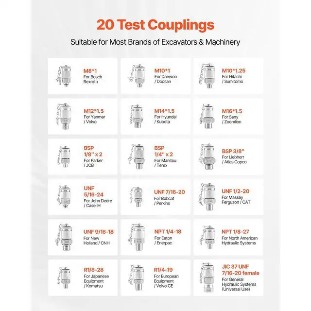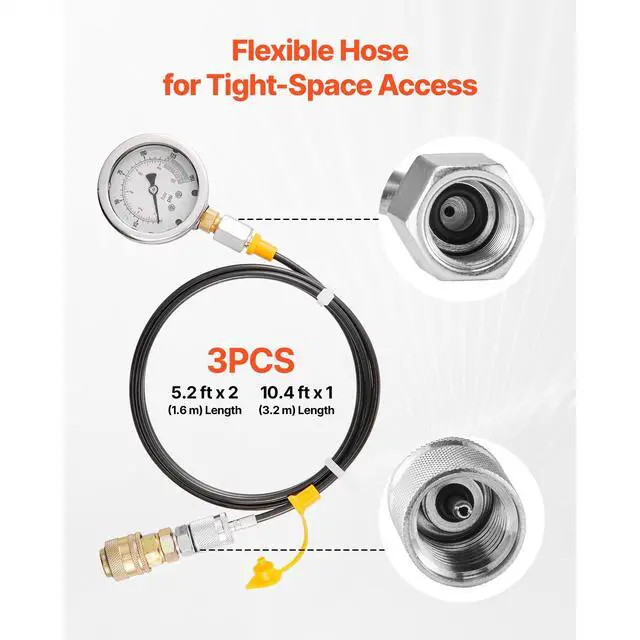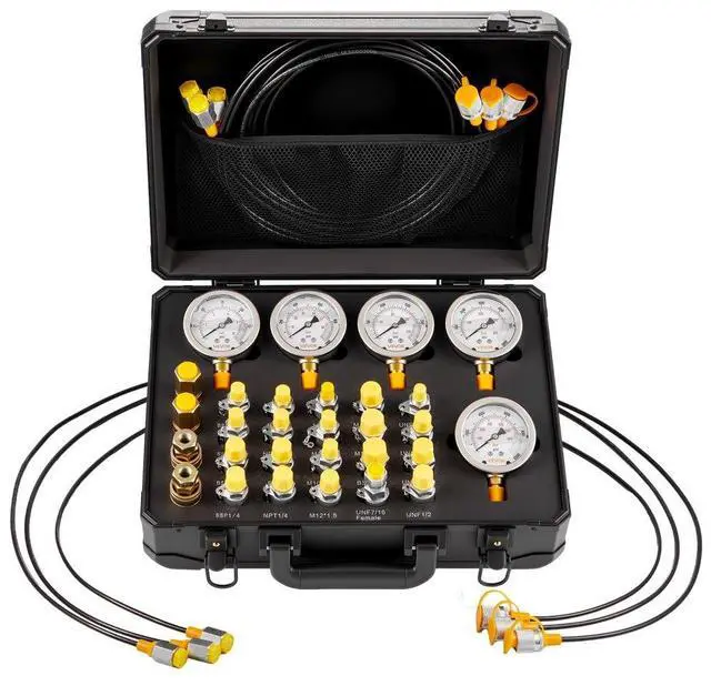 VEVOR Hydraulic Pressure Test Kit 5 Gauges 20 Couplings 4 Connectors 3 Hoses