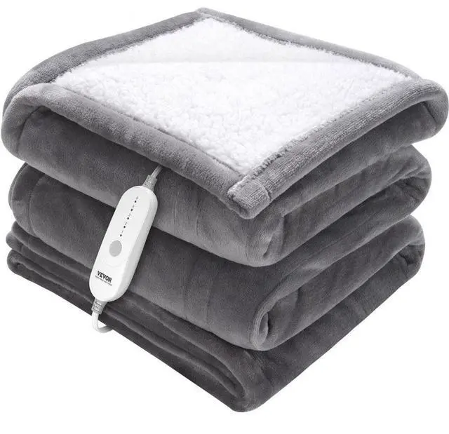 VEVOR Heated Blanket Electric Throw, 50" x 60" Twin Size, Soft Flannel & Sherpa Heating Blanket with 3 Hours Timer Auto-off, 5 Heating Levels for Sofa, Machine Washable, ETL & FCC Certification (Grey)