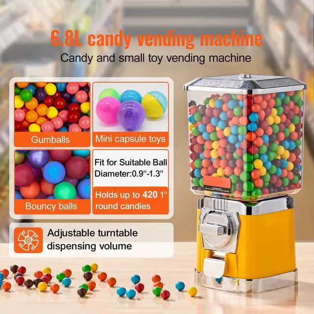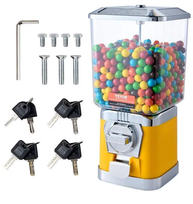 VEVOR 17"H Gumball Machine Vending Coin Bank Vintage Candy Dispenser PC Yellow
