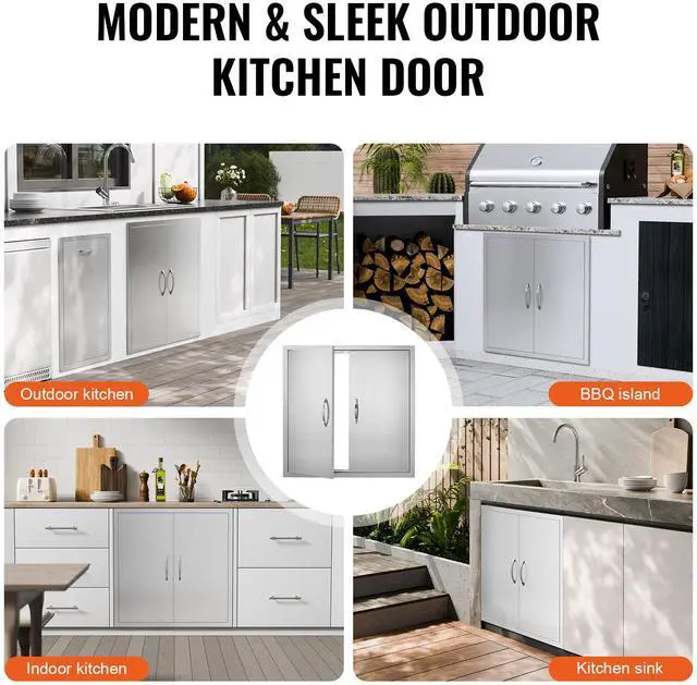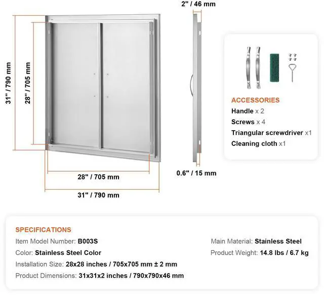 VEVOR BBQ Access Door, 31W x 31H Inch Double Outdoor Kitchen Door, Stainless Steel Flush Mount Door, Wall Vertical Door with Handles, for BBQ Island, Grilling Station, Outside Cabinet
