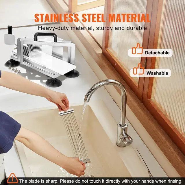 • VEVOR Commercial Tomato Slicer, 3/8 inch Tomato Cutter Slicer, Stainless Steel Heavy Duty Tomato Slicer Machine, Manual Tomato Slicer with Non-slip Feet, for Cutting Tomatoes, Cucumbers, Bananas