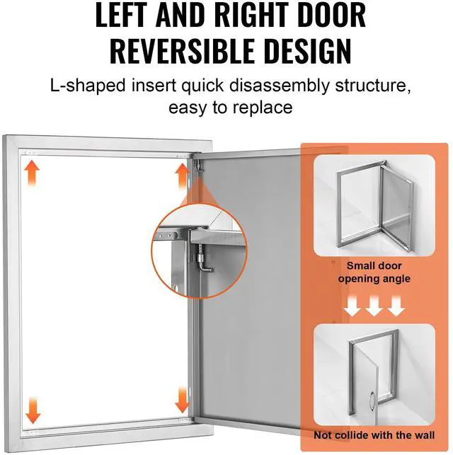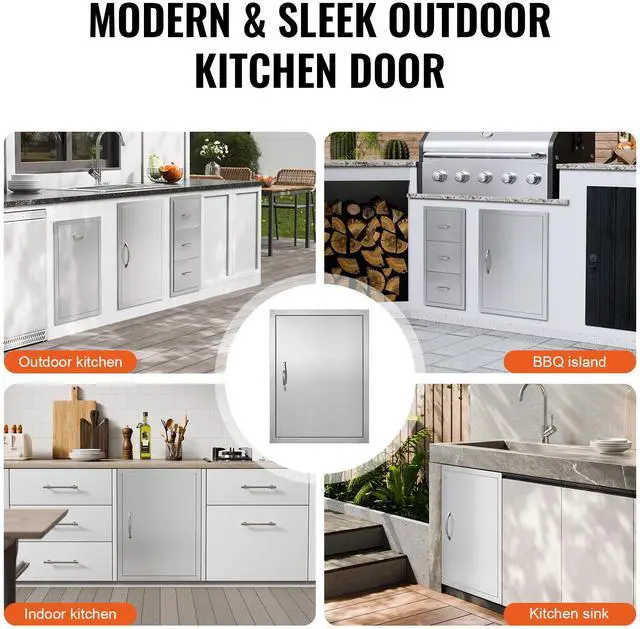 VEVOR BBQ Access Door, 20W x 27H Inch Single Outdoor Kitchen Door, Stainless Steel Flush Mount Door, Wall Vertical Door with Handle, for BBQ Island, Grilling Station, Outside Cabinet
