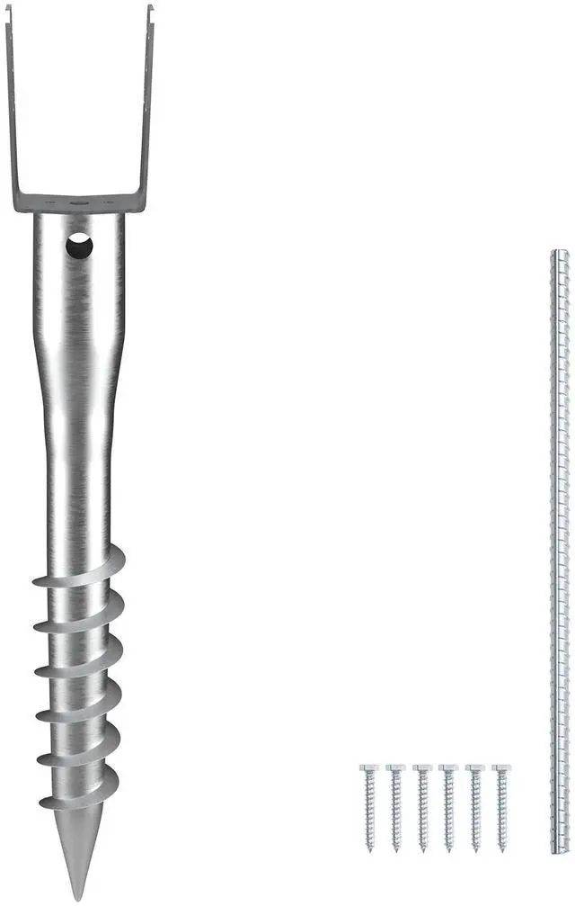 VEVOR No Dig Ground Anchor, 1 Pack 3.94 x 2.76 x 27.56 in DIY Screw in Post Stake, Includes 6 Lag Bolts & a Rebar, U-Shape Heavy Duty Steel Post Holder, Great for Mailbox Posts and Fence Posts
