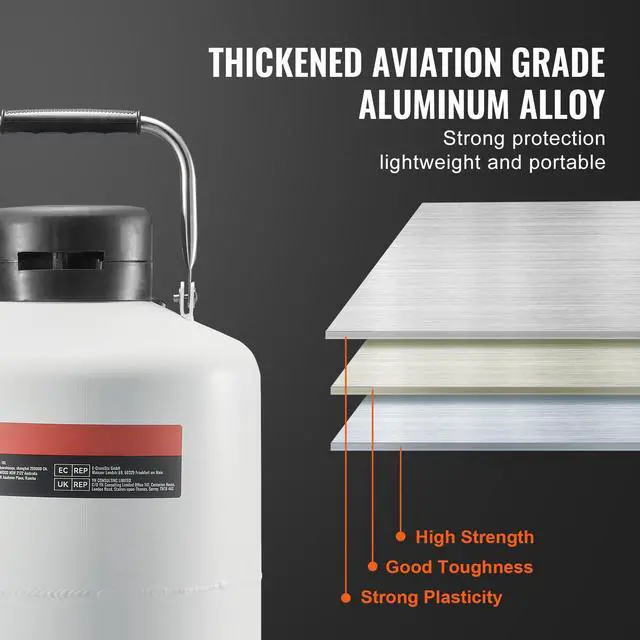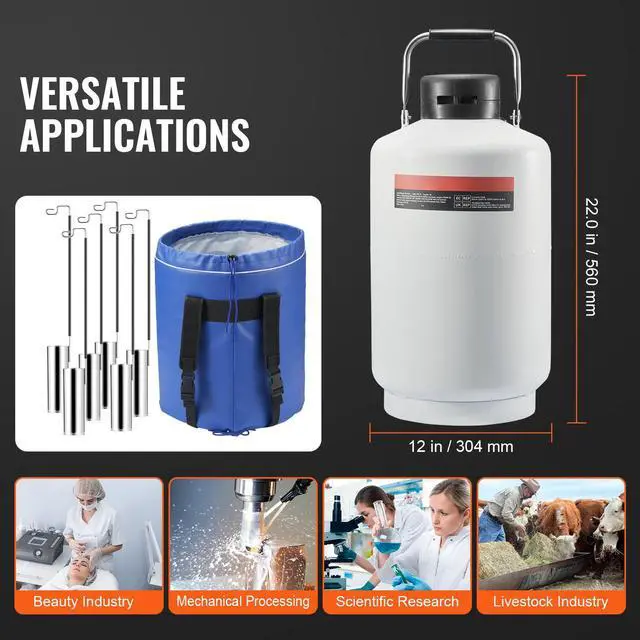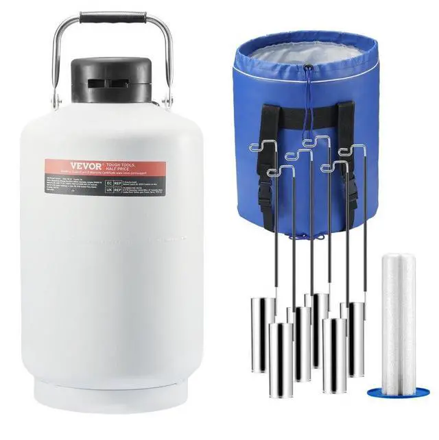 VEVOR Liquid Nitrogen Tank 10 L Aluminum Alloy LN2 Container Dewar 6 Canisters