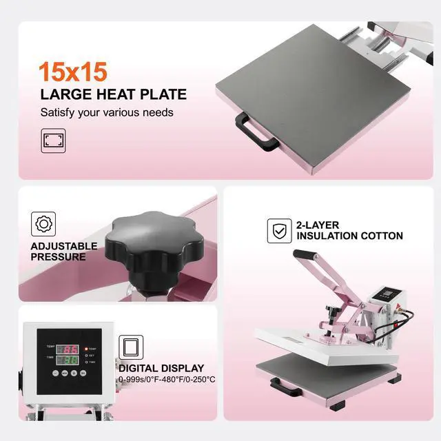 VEVOR Heat Press Machine 15x15 in Slide Out Heat Transfer Machine T-Shirts Pink