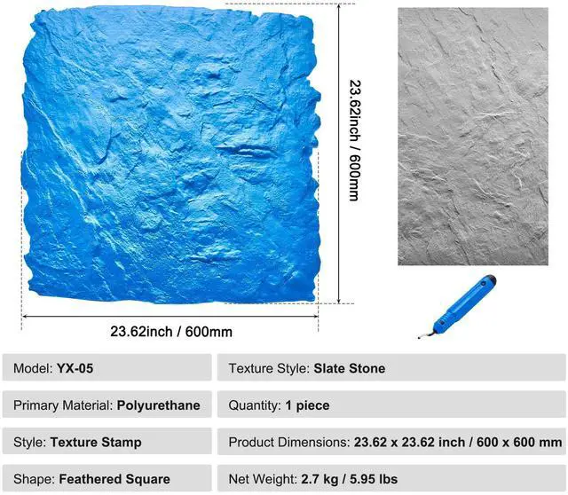 Primary Material: Polyurethane,Shape: Feathered Square,Item Model Number: YX-05,Texture Style: Slate Stone,Style: Texture Roller,Packaging Quantity: 1 piece,Product Dimensions: 23.62 x 23.62 inch / 600 x 600 mm,Net Weight: 2.7 kg / 5.95 lbs