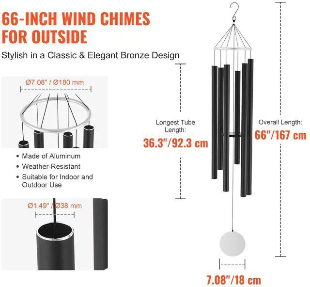 • VEVOR Wind Chimes for Outside 66-Inch Aluminum Memorial Deep Tone Wind Chimes