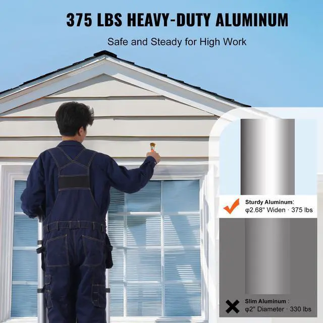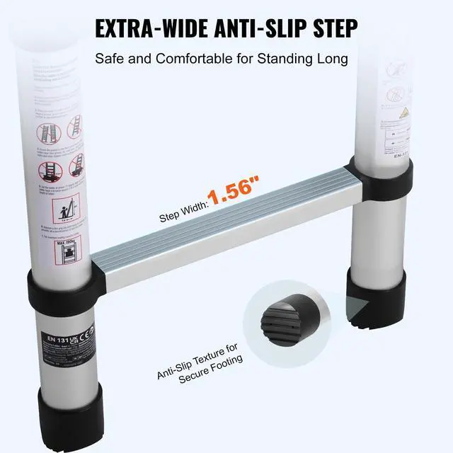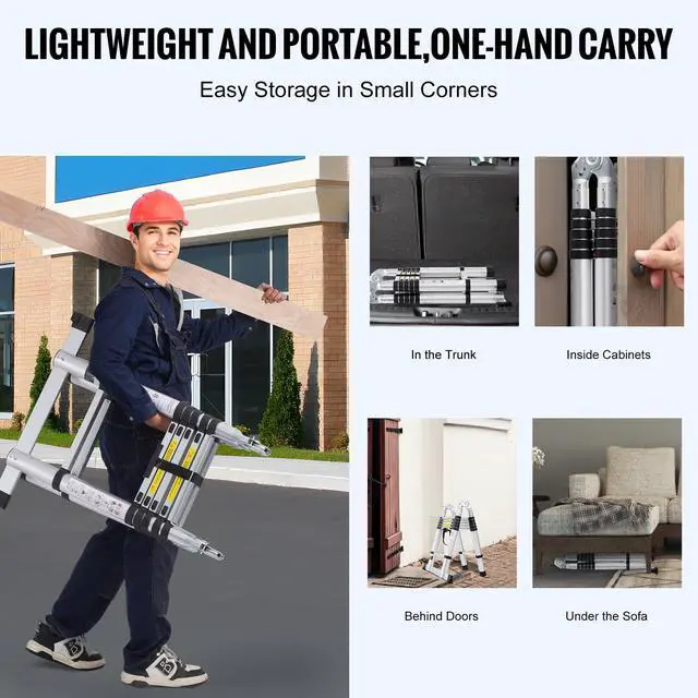 Telescoping Extension Ladder 12.5FT A-Shape w/ Stabilizer Bar for RV