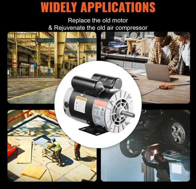 5HP SPL Air Compressor Motor 230V 17.6A 3450RPM 56 Frame CW/CCW Rotation (Factory Setting is CCW)