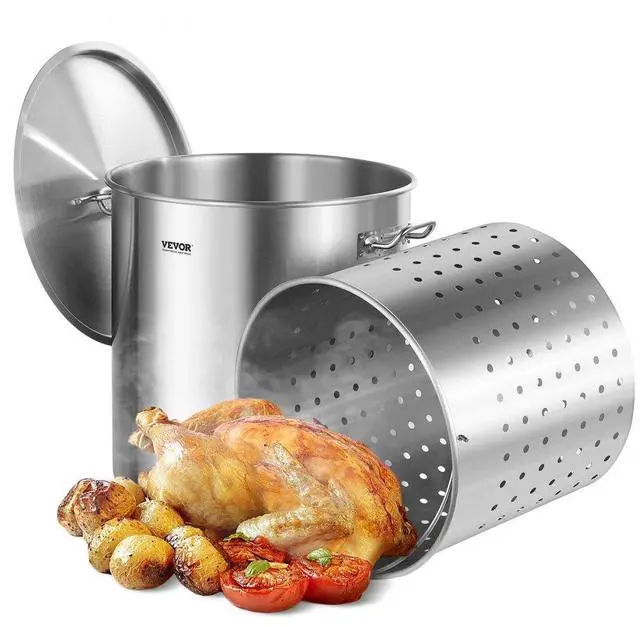 84QT Stainless Steel Stockpot Cooking Kitchen Sauce Pot with Basket Lid Handle