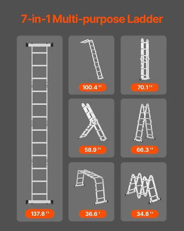 Multi-Purpose Folding Ladder 7-in-1 3 Step 12ft Reach Height for Work