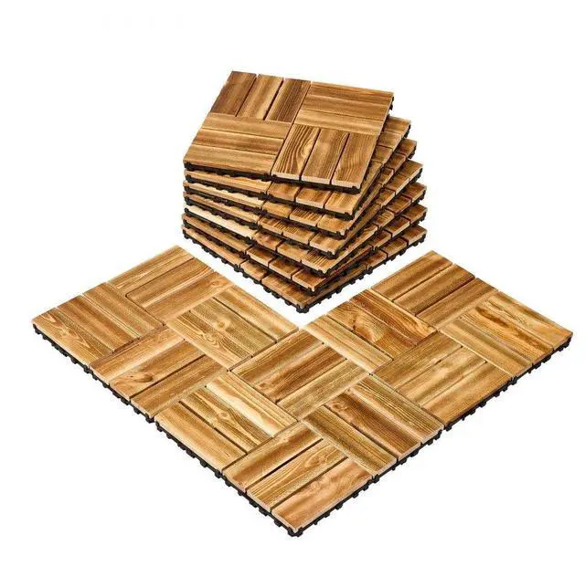 VEVOR Interlocking Deck Tiles Solid Wood 10 Pack 11.6" x 11.6" Camphor Pine for Porch
