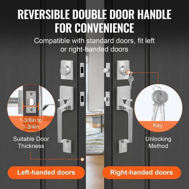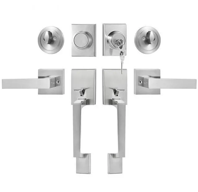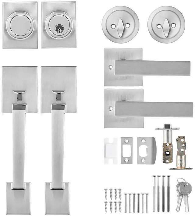Double Door Handle Set Double Door Lock Set Satin Nickel Square Door Lever