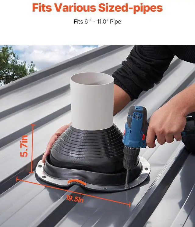 2 Pcs Metal Roof Pipe Flashing Boots Fit 6" - 11" Pipe High Temp Black EDPM