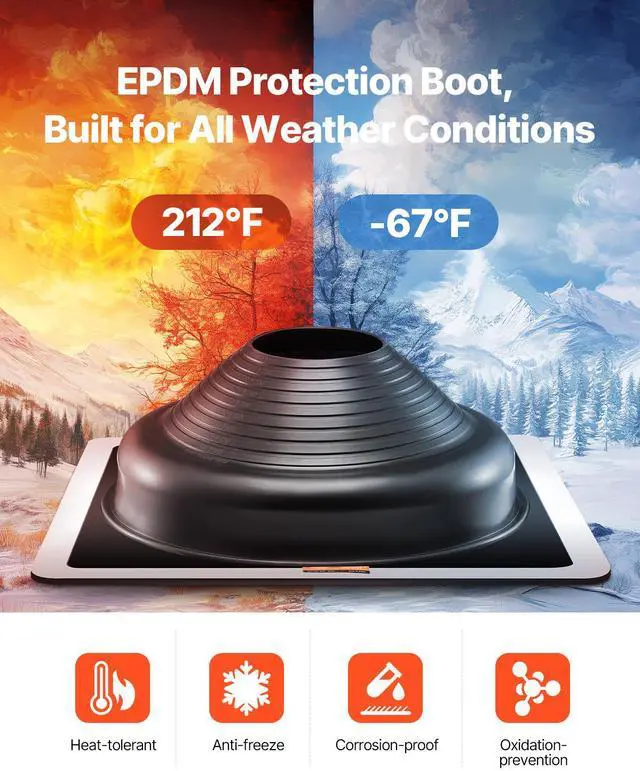 2 Pcs Metal Roof Pipe Flashing Boots Fit 6-3/4" - 14" Pipe High Temp Black EDPM
