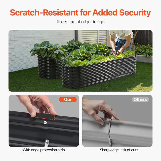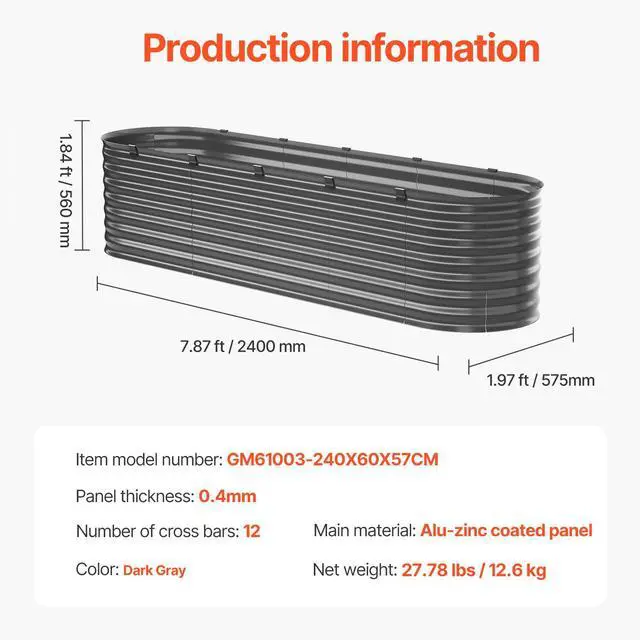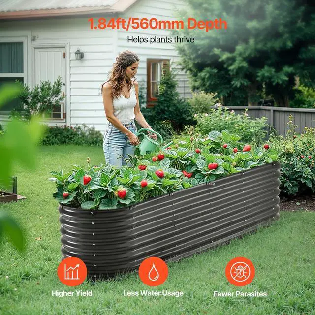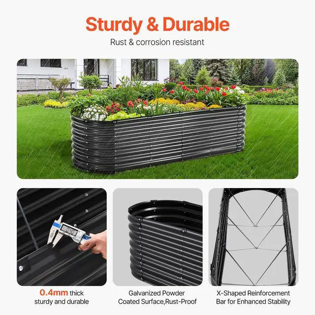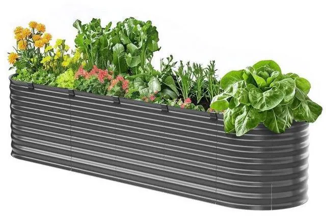 • Metal Raised Garden Bed 8x2x2 ft Outdoor Galvanized Planter Box Dark Gray
