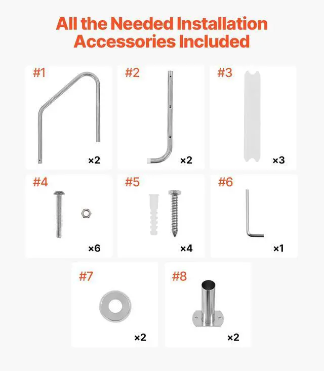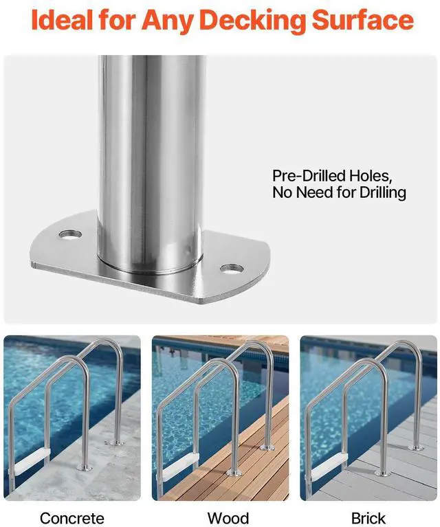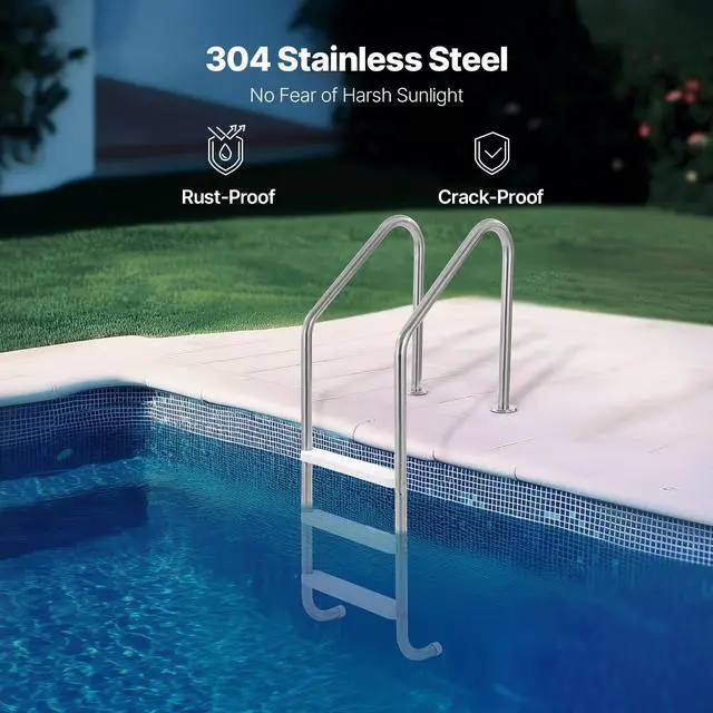 3-Step Stainless Steel Pool Ladder of 2 Handrails Loads 265 lb for 48-54 In Pool