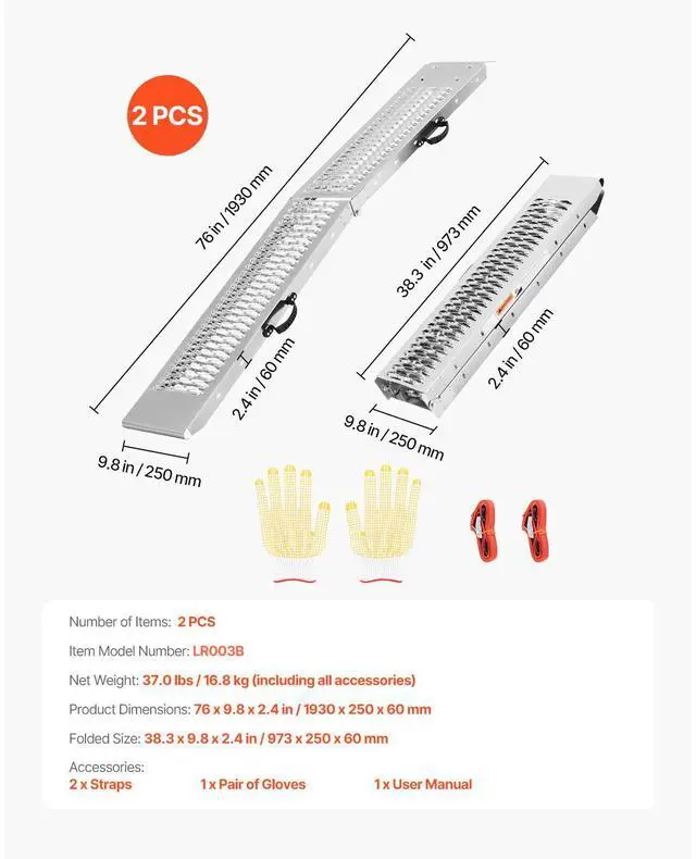 Item Model Number: LR003B,Folded Size: 38.3 x 9.8 x 2.4 in/973 x 250 x 60 mm,Product Dimensions: 76 x 9.8 x 2.4 in/1930 x 250 x 60 mm,Number of Items: 2 PCS,Net Weight: 37.0 lbs/16.8 kg (including all accessories)