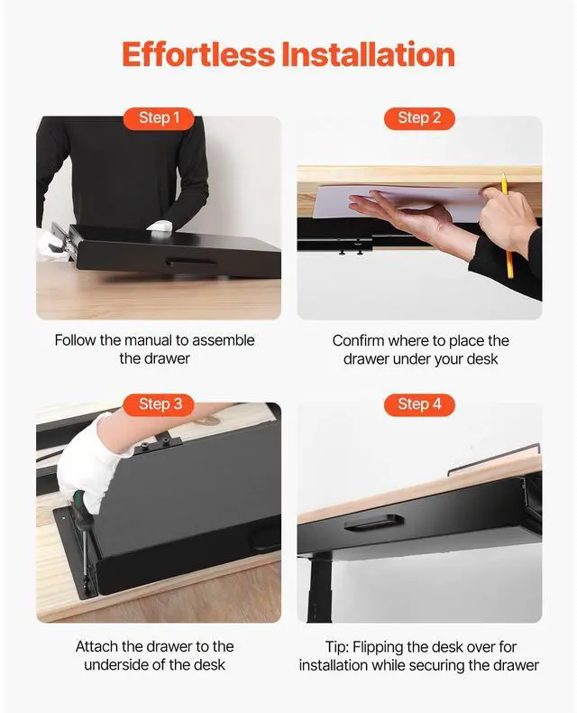 • 22 in Under Desk Drawer Organizer Slide-out Drawer Space Saver for Home Office