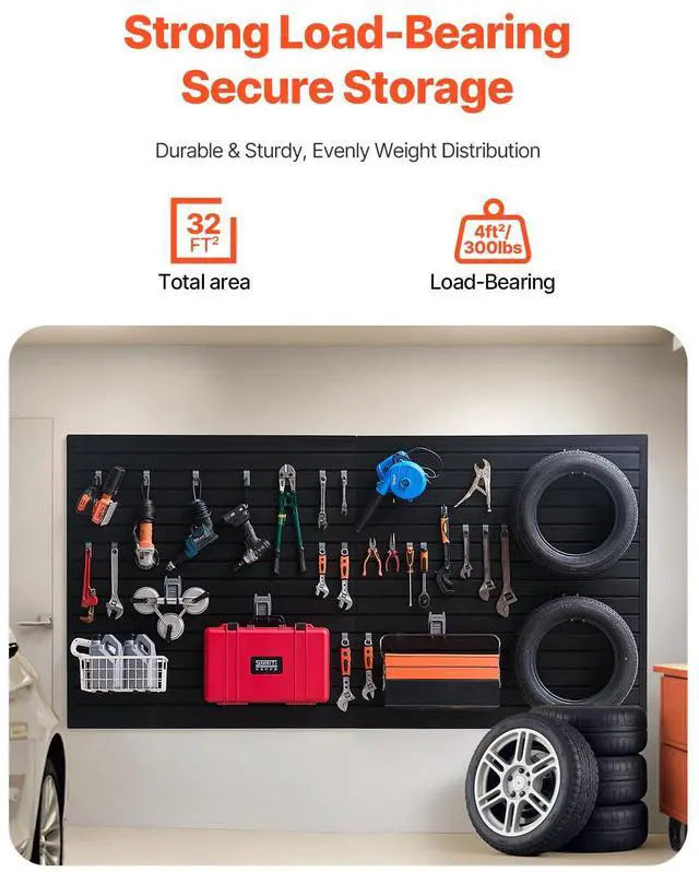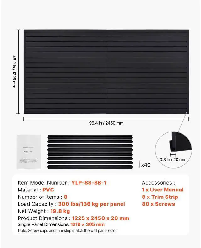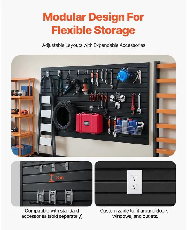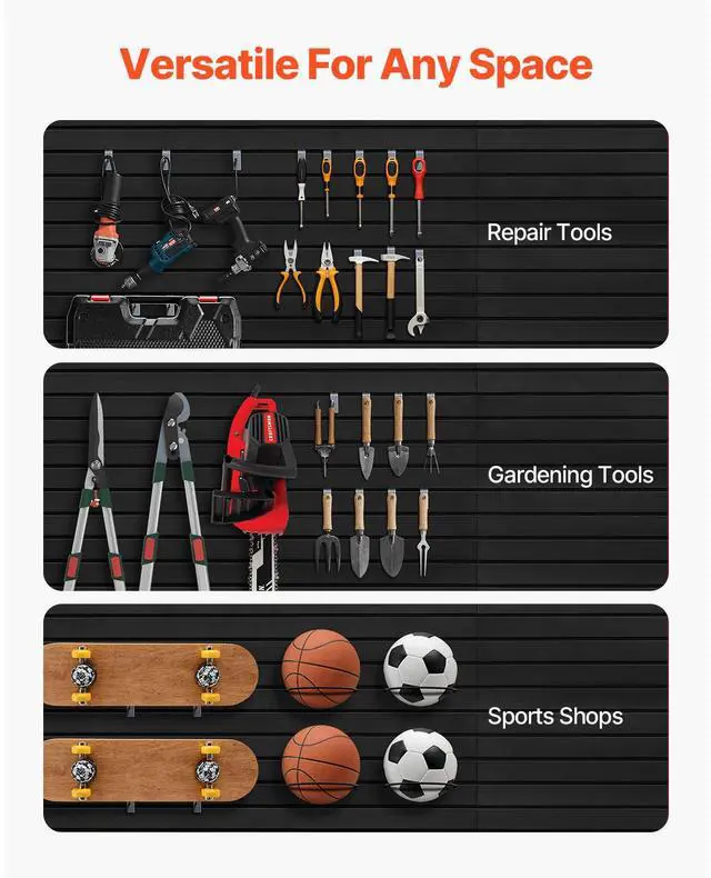 8 x 4 ft Slat Wall Paneling PVC Black Garage Slatwall with Modular Design