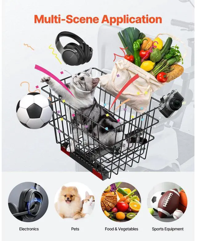 Scooter Rear Basket Heavy Duty Mobility Basket with Handle 1 in Receiver