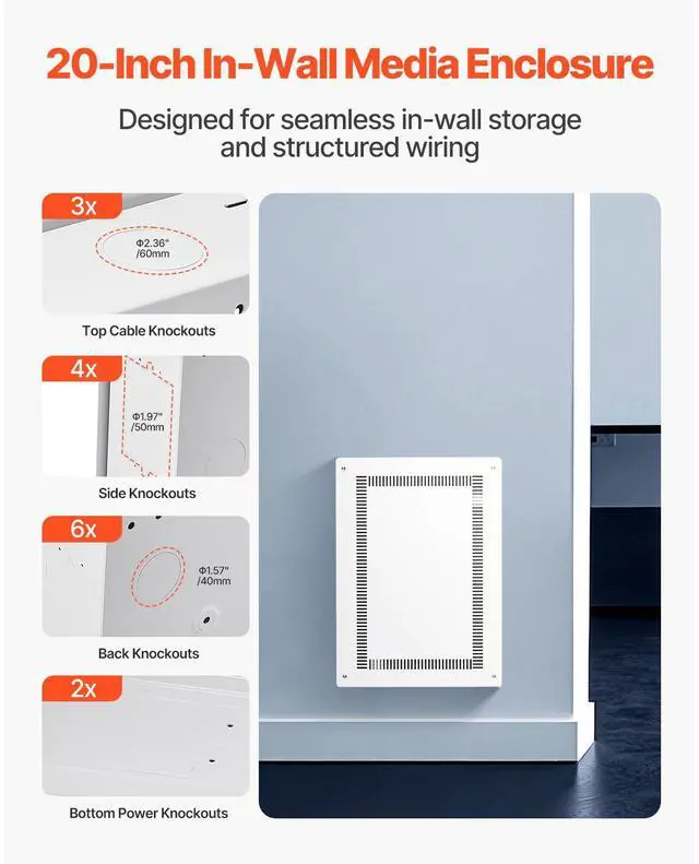 Structured Media Enclosure 20 in Recessed in-Wall TV Media Box with Cover