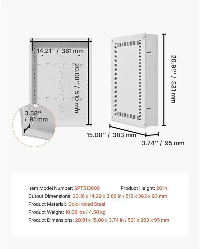 Cutout Dimensions: 20.16 x 14.29 x 3.66 in / 512 x 363 x 93 mm,Product Material: Cold-rolled Steel,Product Height: 20 in,Item Model Number: SPT513609,Product Weight: 10.09 lbs / 4.58 kg,Product Dimensions: 20.91 x 15.08 x 3.74 in / 531 x 383 x 95 mm