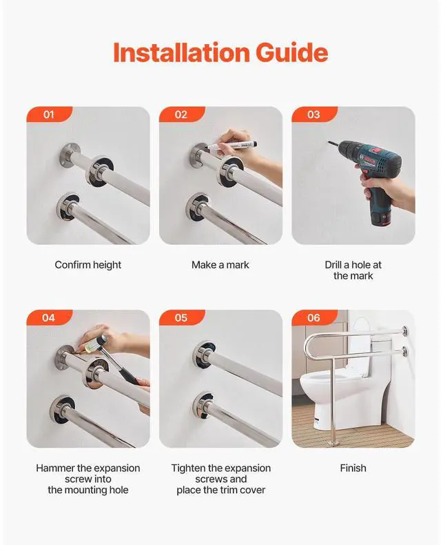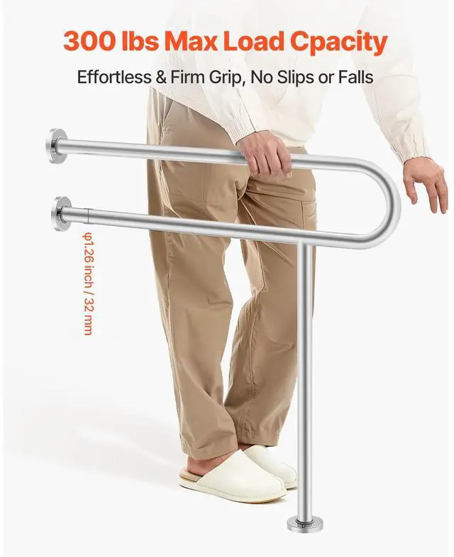Toilet Safety Rail with Leg 31.5 In 300lb Load Capacity Stainless Steel Grab Bar