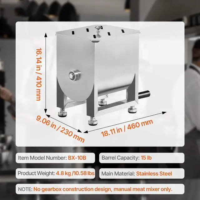 Manual Meat Mixer 15L Fixed Tank Mixing Max 15LB for Meat Sausage Mixer Machine