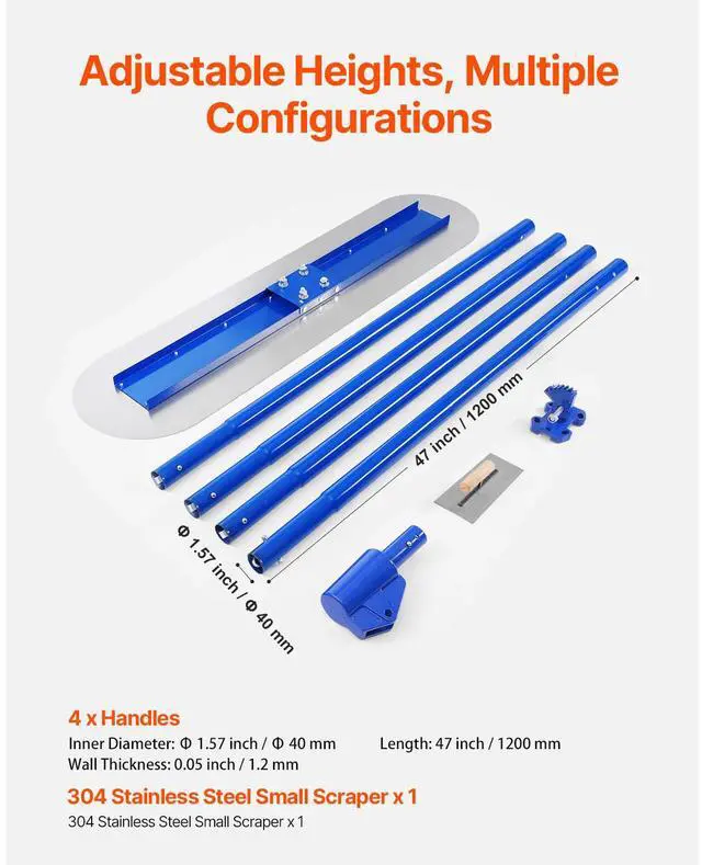 Bull Concrete Float 47.24 x 7.28in Concrete Tool Trowel Float 4 Handle Round End