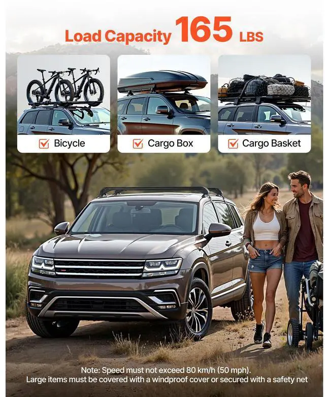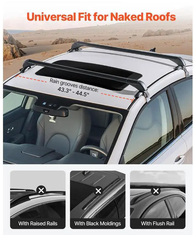 Lockable Roof Rack Cross Bars 165 LBS Capacity Universal Fit for Naked Roofs